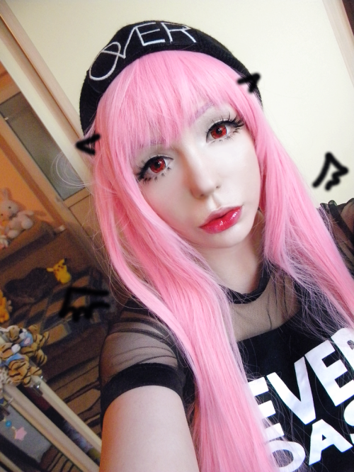 These red lenses look exemplary against short white wig the same way. The wig is chin length and needs gentle touch-ups and swishing before putting on.